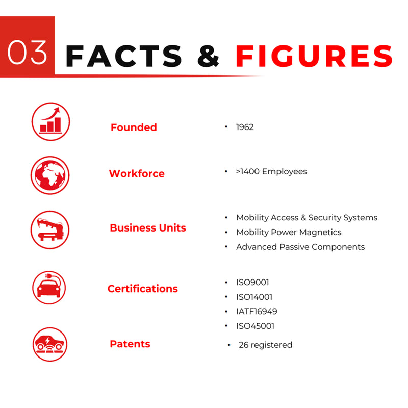 我们的 1600 名员工分布在 8 个不同地点,并在 36 个国家设有区域代表,覆盖亚洲、欧洲和美洲,使我们能够与客户密切合作。我们的全球分布充分保证了我们产品在全球范围内的供应。