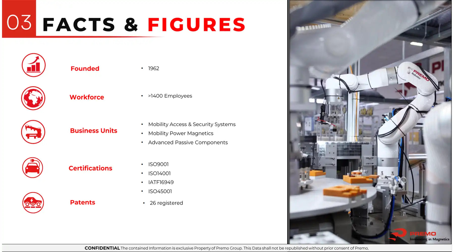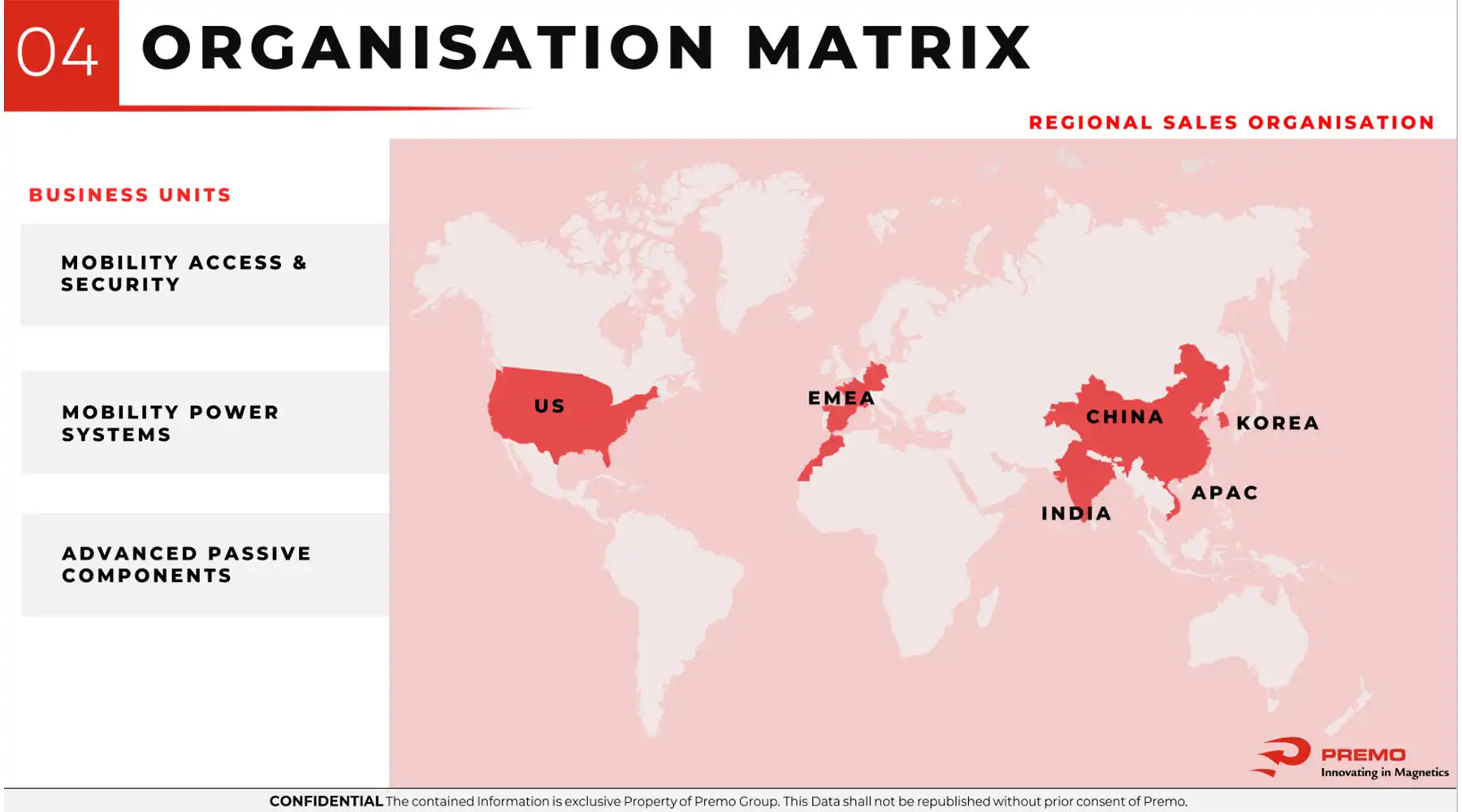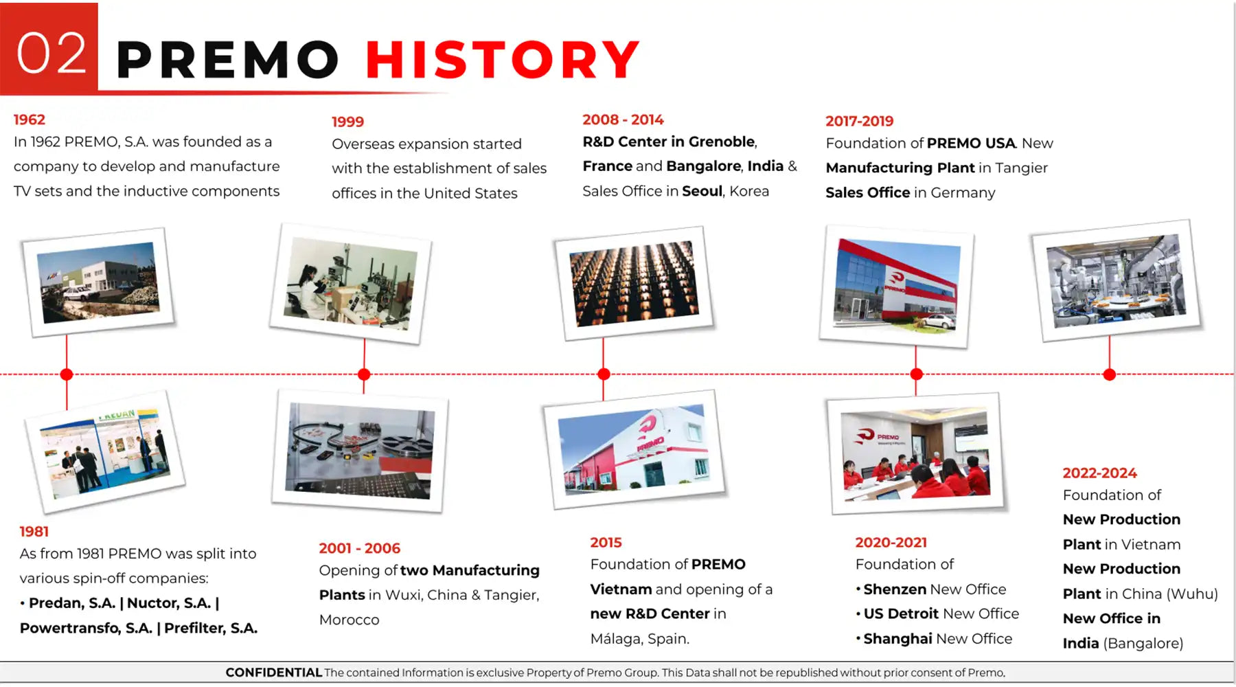超过 1300 名员工、8 个设计中心和 4 个生产基地以及广泛的销售网络使 PREMO 的业务遍及全球 36 多个国家,能够满足客户的特定需求。